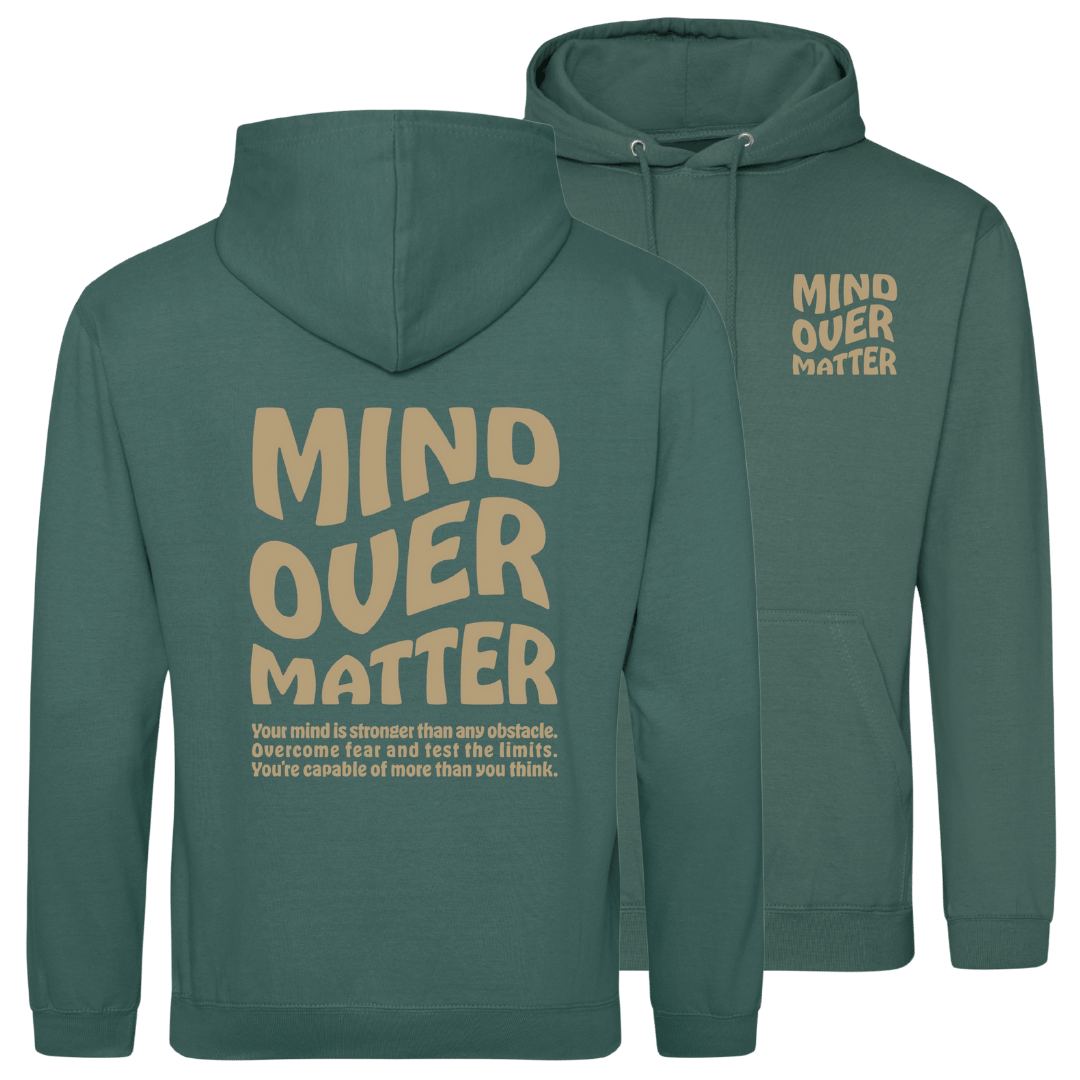 This Mind over matter hoodie is for those who challenge obstacles, conquer fear and embrace growth. Perfect for adventurer's, dreamers and every day warriors. - JH001